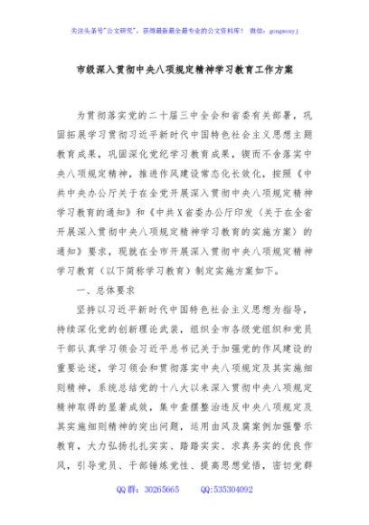 / 市级深入贯彻中央八项规定精神学习教育工作方案