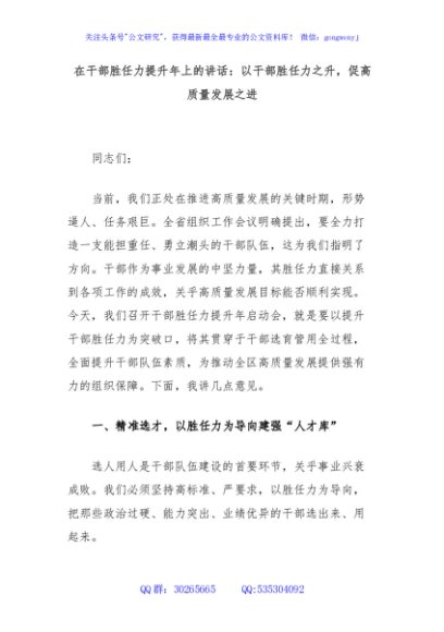 / 在干部胜任力提升年上的讲话:以干部胜任力之升,促高质量发展之进