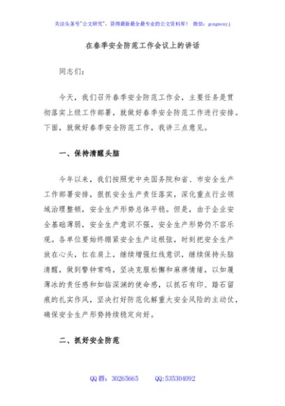 / 在春季安全防范工作会议上的讲话