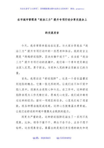 / 在市城市管理局“政治三力”提升专项行动分享交流会上的交流发言