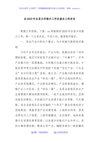 / 在2025年全县乡村振兴工作务虚会上的发言