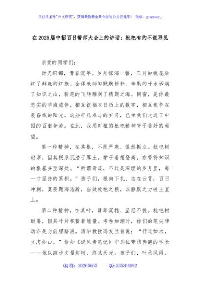 / 在2025届中招百日誓师大会上的讲话:枇杷有约不说再见