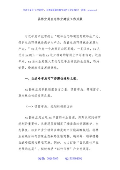 / 县林业局生态林业建设工作成效