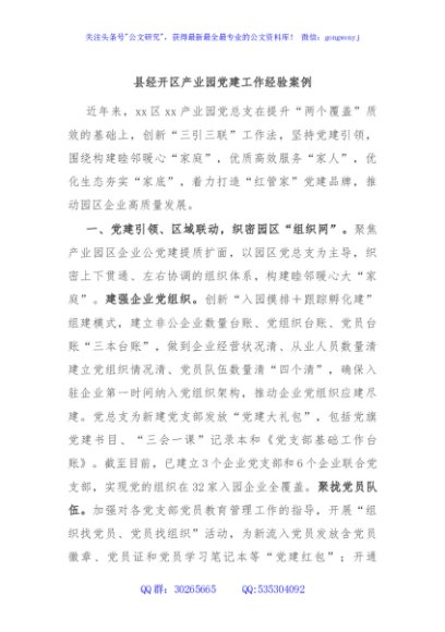 / 县经开区产业园党建工作经验案例