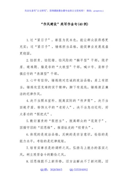 / (40例)“作风建设”类写作金句