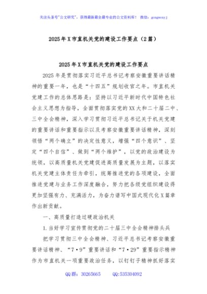 / (2篇)2025年X市直机关党的建设工作要点2