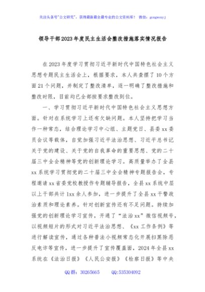 / 领导干部2023年度民主生活会整改措施落实情况报告