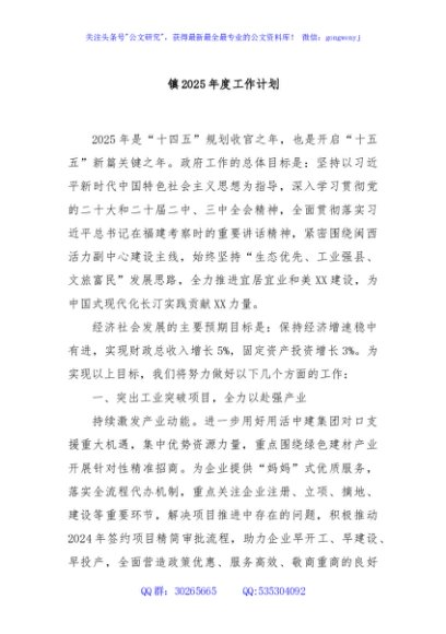 镇2025年度工作计划