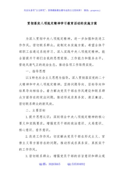 / 贯彻落实八项规定精神学习教育活动的实施方案