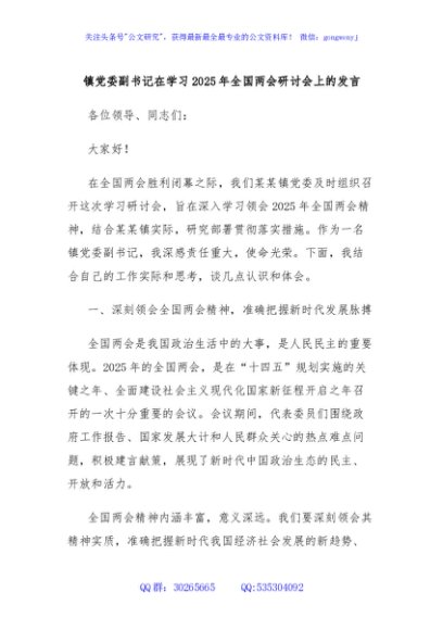 / 镇党委副书记在学习2025年全国两会研讨会上的发言