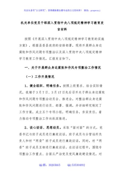 / 机关单位党员干部深入贯彻中央八项规定精神学习教育发言材料