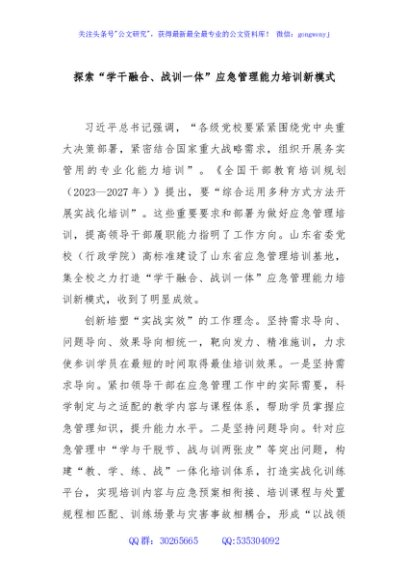 / 探索“学干融合、战训一体”应急管理能力培训新模式