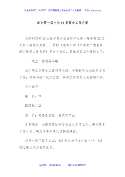 / 成立第一届中共XX委员会工作方案