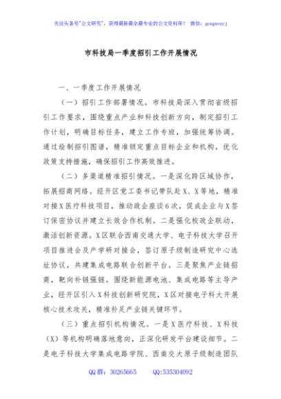 / 市科技局一季度招引工作开展情况
