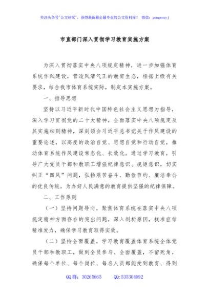 / 市直部门深入贯彻学习教育实施方案