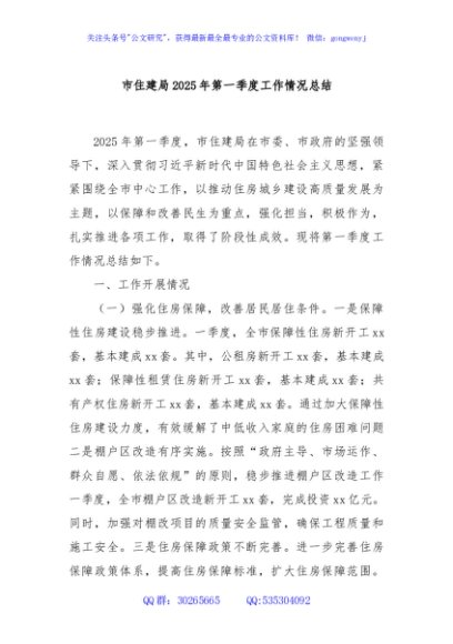 / 市住建局2025年第一季度工作情况总结
