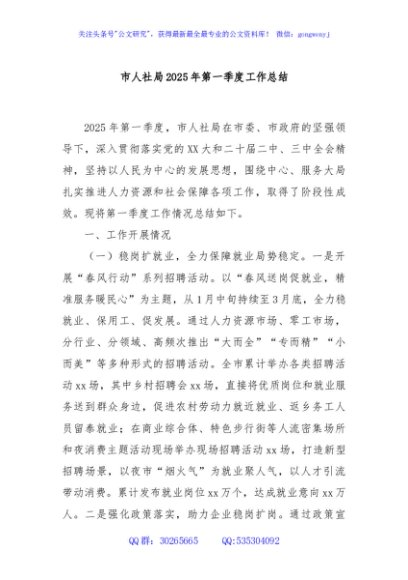 / 市人社局2025年第一季度工作总结