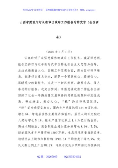 / 山西省财政厅厅长在审议政府工作报告时的发言(全国两会)