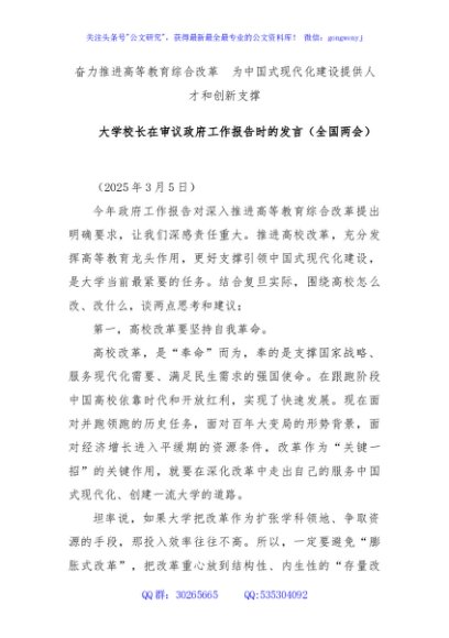 / 大学校长在审议政府工作报告时的发言(全国两会)