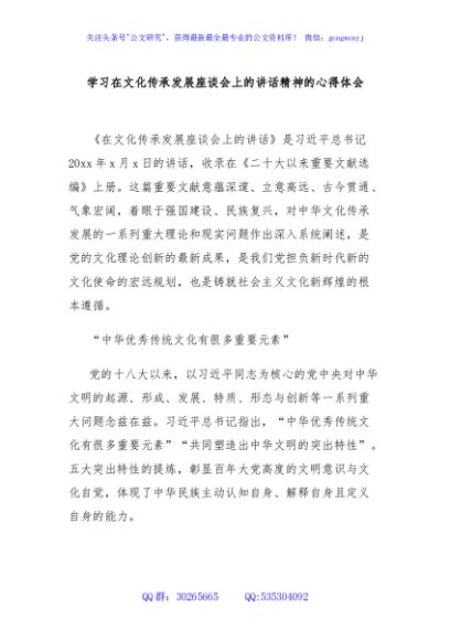 / 学习在文化传承发展座谈会上的讲话精神的心得体会