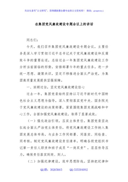 / 在集团党风廉政建设专题会议上的讲话