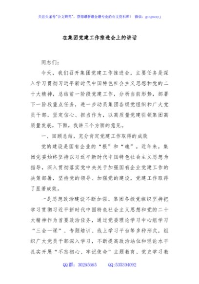 / 在集团党建工作推进会上的讲话