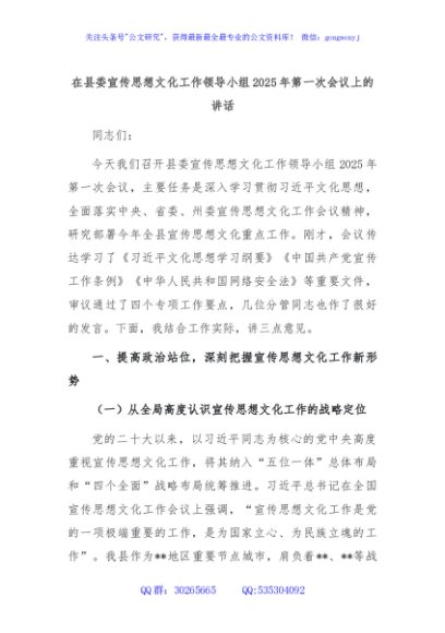 / 在县委宣传思想文化工作领导小组2025年第一次会议上的讲话