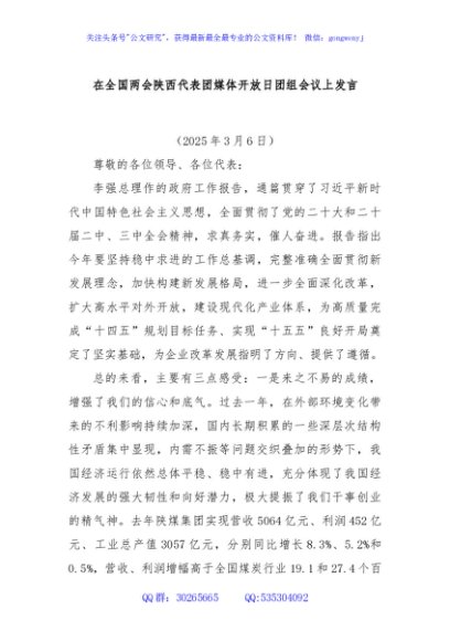 / 在全国两会陕西代表团媒体开放日团组会议上发言