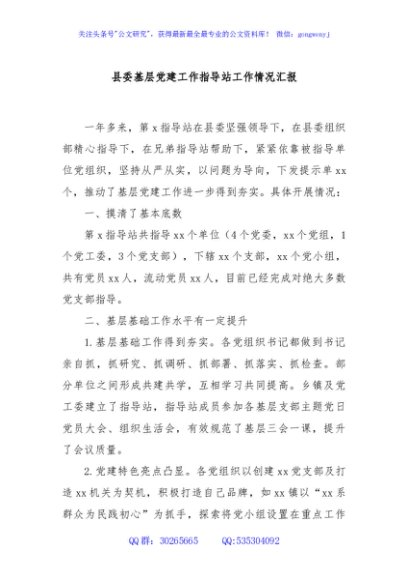 / 县委基层党建工作指导站工作情况汇报