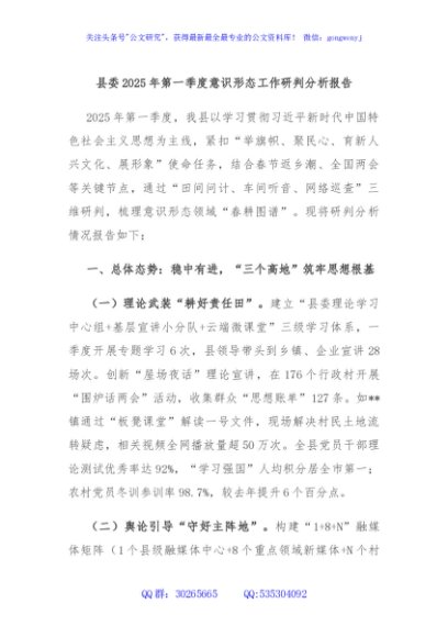 / 县委2025年第一季度意识形态工作研判分析报告