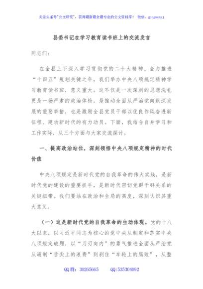 / 县委书记在学习教育读书班上的交流发言