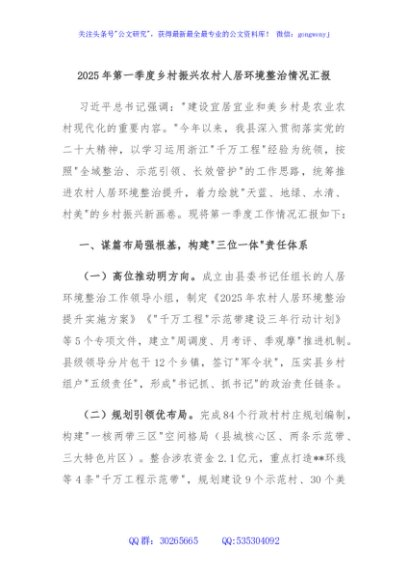 / 2025年第一季度乡村振兴农村人居环境整治情况汇报