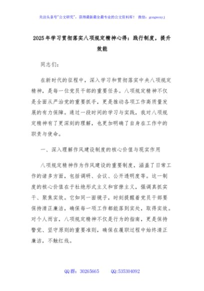 / 2025年学习贯彻落实八项规定精神心得:践行制度,提升效能