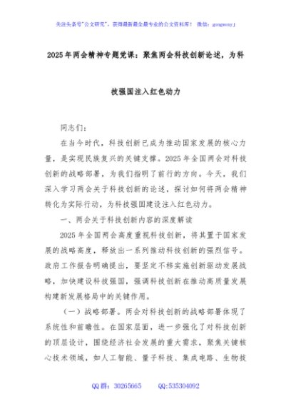 / 2025年两会精神专题党课:聚焦两会科技创新论述,为科技强国注入红色动力
