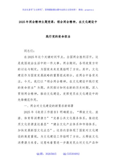 / 2025年两会精神主题党课:领会两会精神,在文化建设中践行党的使命担当