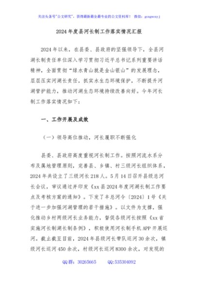 / 2024年度县河长制工作落实情况汇报