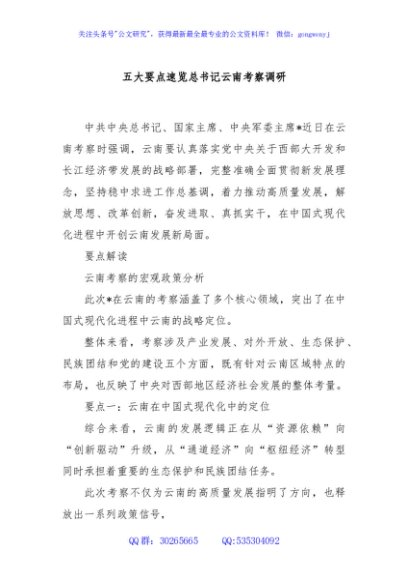 / 党课讲稿:五大要点速览总书记云南考察调研
