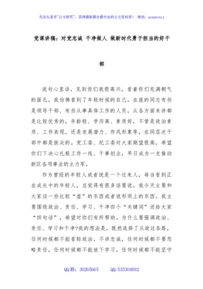 / 党课讲稿:对党忠诚 干净做人 做新时代勇于担当的好干部