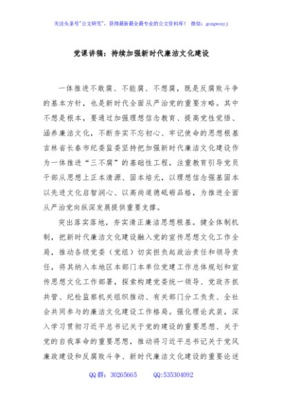 / 党课讲稿:持续加强新时代廉洁文化建设