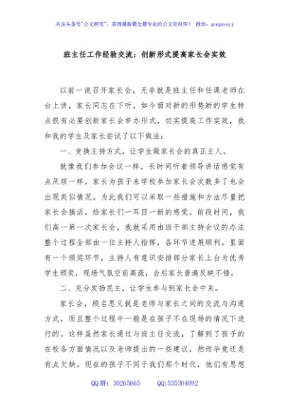 / 班主任工作经验交流:创新形式提高家长会实效
