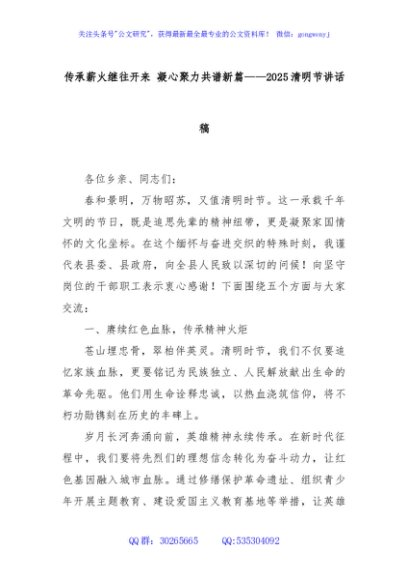 / 传承薪火继往开来 凝心聚力共谱新篇——2025清明节讲话稿