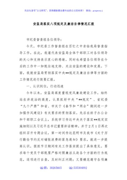 / 安监局落实八项规定及廉洁自律情况汇报