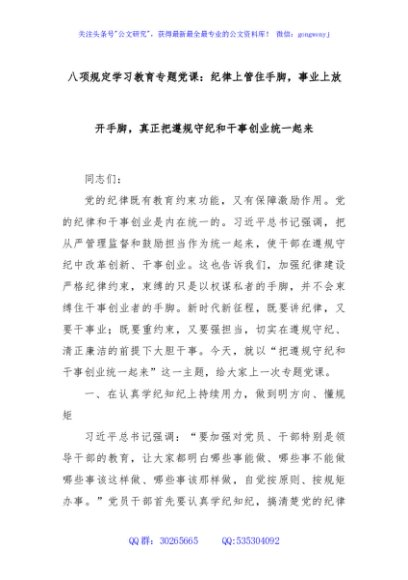 八项规定学习教育专题党课:纪律上管住手脚,事业上放开手脚,真正把遵规守纪和干事创业统一起来
