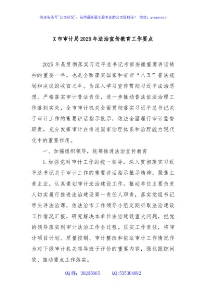 / X市审计局2025年法治宣传教育工作要点