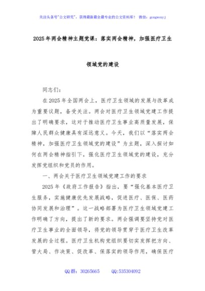 / 2025年两会精神主题党课:落实两会精神,加强医疗卫生领域党的建设