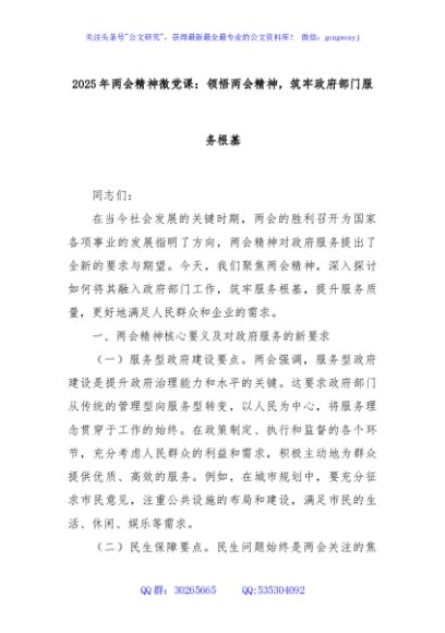 / 2025年两会精神微党课:领悟两会精神,筑牢政府部门服务根基