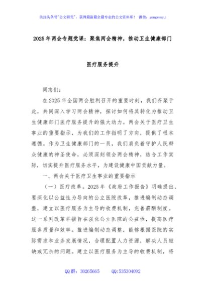 2025年两会专题党课:聚焦两会精神,推动卫生健康部门医疗服务提升