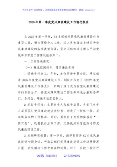 / 2025年第一季度党风廉政建设工作情况报告