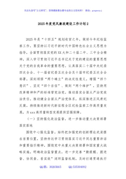 / 2025年度党风廉政建设工作计划2