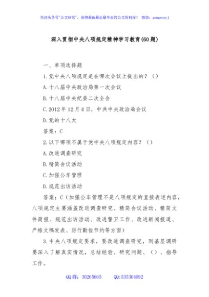 / (60题)深入贯彻中央八项规定精神学习教育
